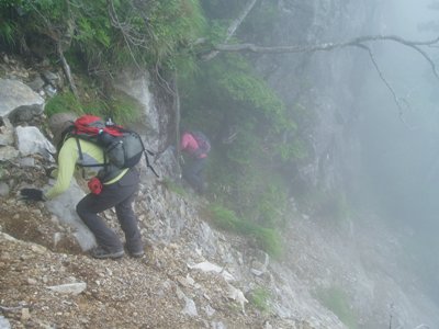 稜線 岩壁基部をトラバース