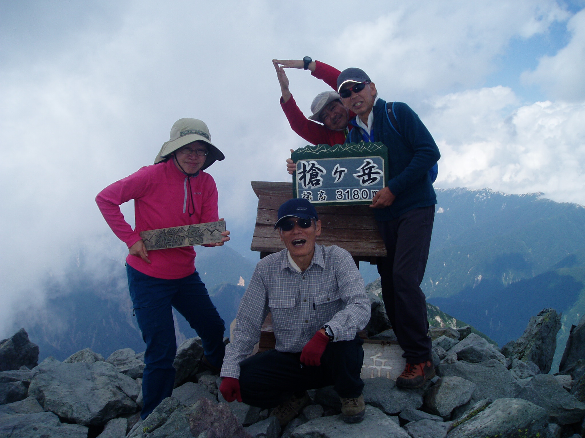 Rちゃんに対抗して、後ろの人に冥土の土産にもう一枚と言って写してもらった写真なのに槍ヶ岳の看板がない