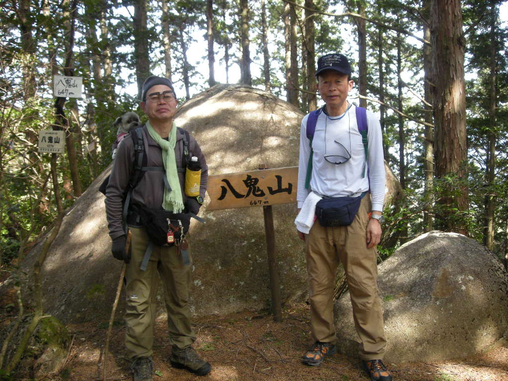 八鬼山の文字がないと分からないかも?八鬼山の頂上です。
