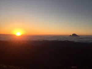 農鳥小屋農鳥岳山頂間ノ岳山頂大門沢小屋天場日の出と富士山
