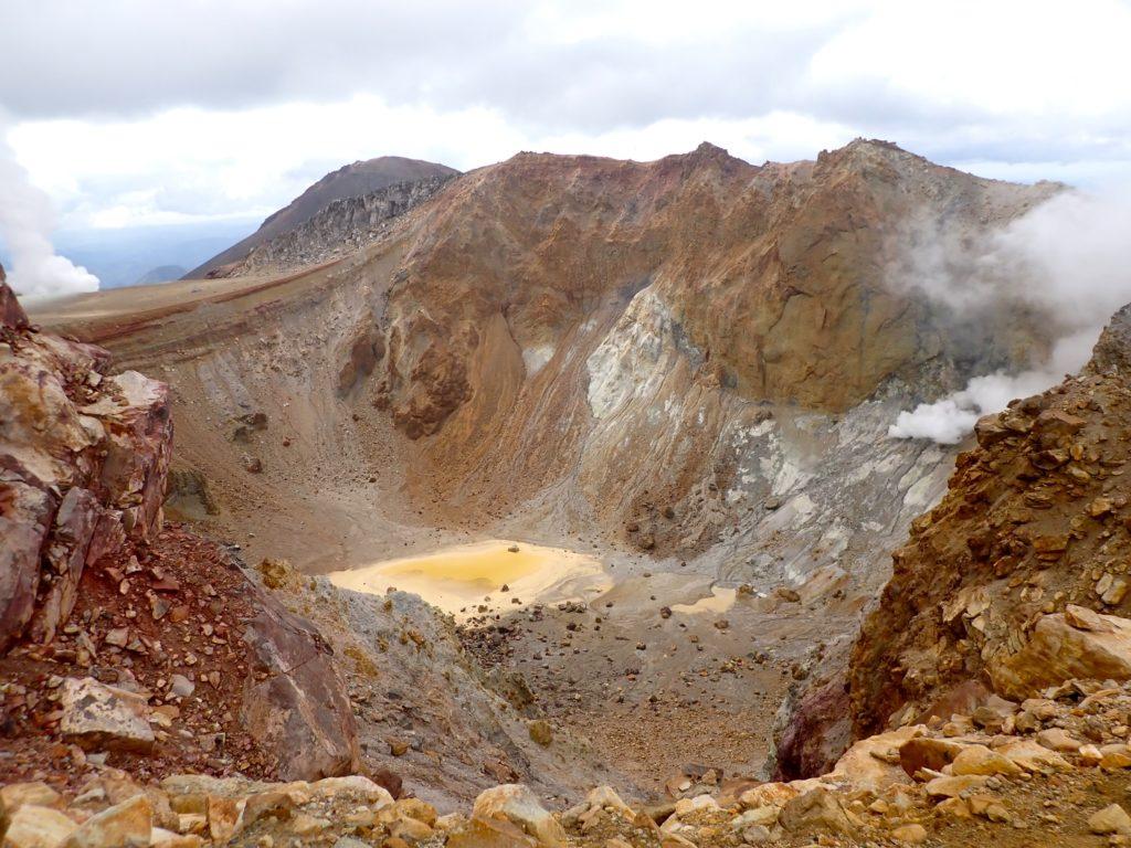 爆裂火口からガスが上がる↑↑ いつ噴火してもおかしくないようだ。 噴火のすごさを感じる!