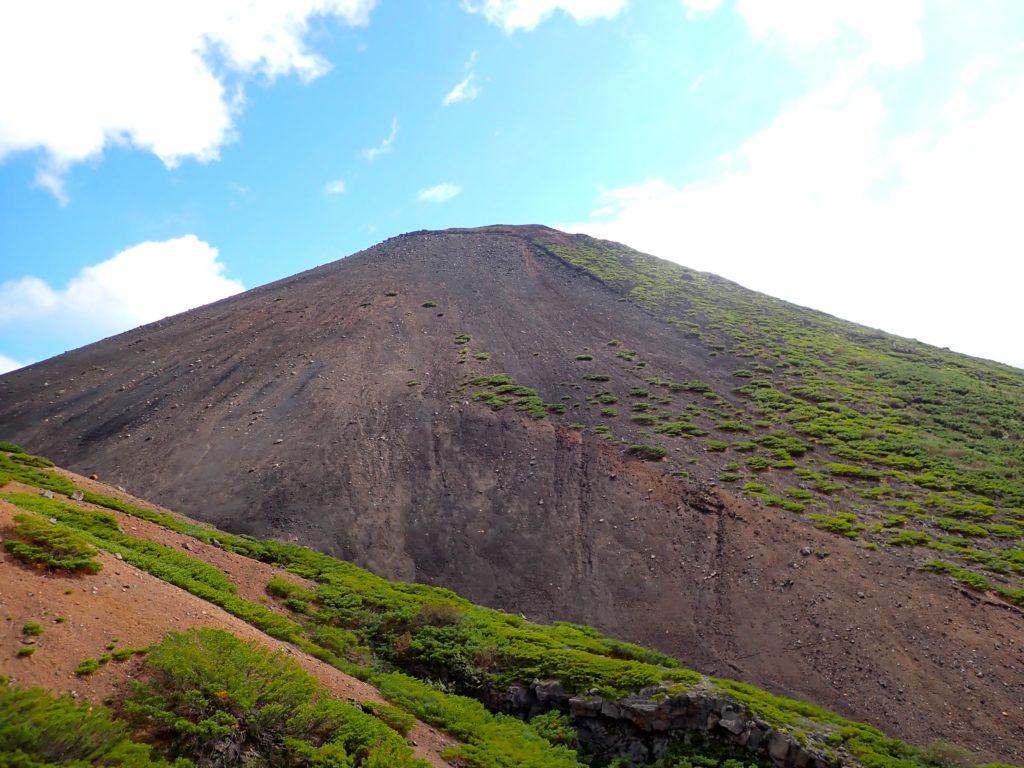 中腹まで登ると、隣の雄阿寒岳が現れる。山頂まで整備された登山道で歩きやすかった。