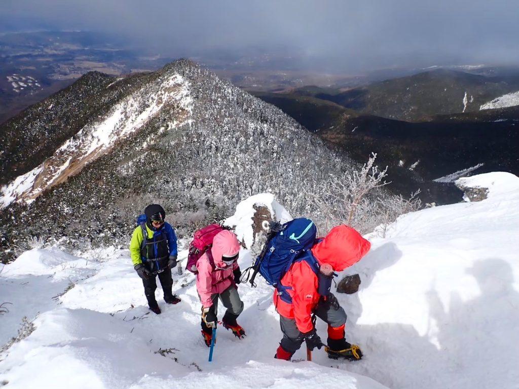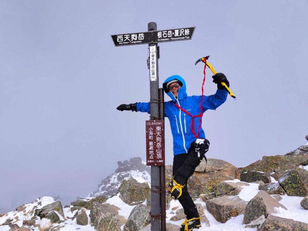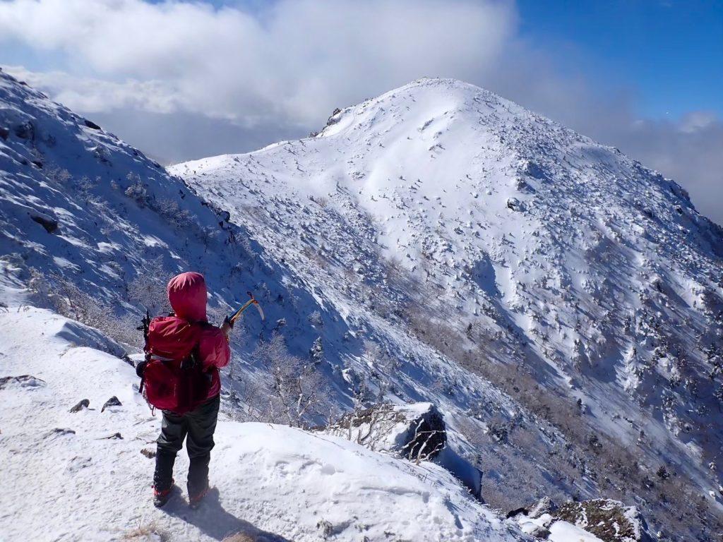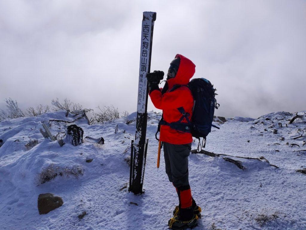 ピッケルを使って、西天狗岳を登る! 風は思ったより強くなかった。