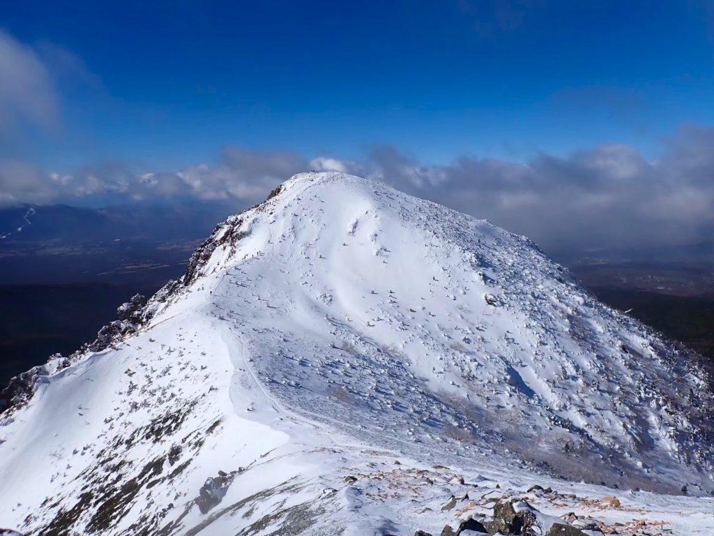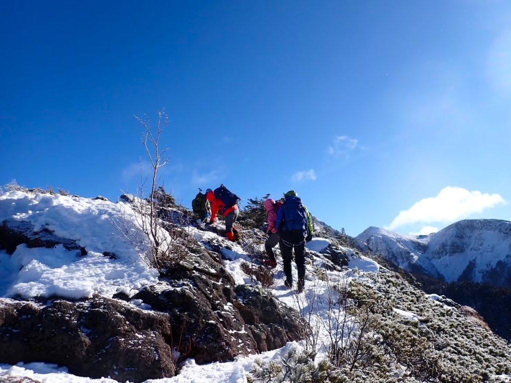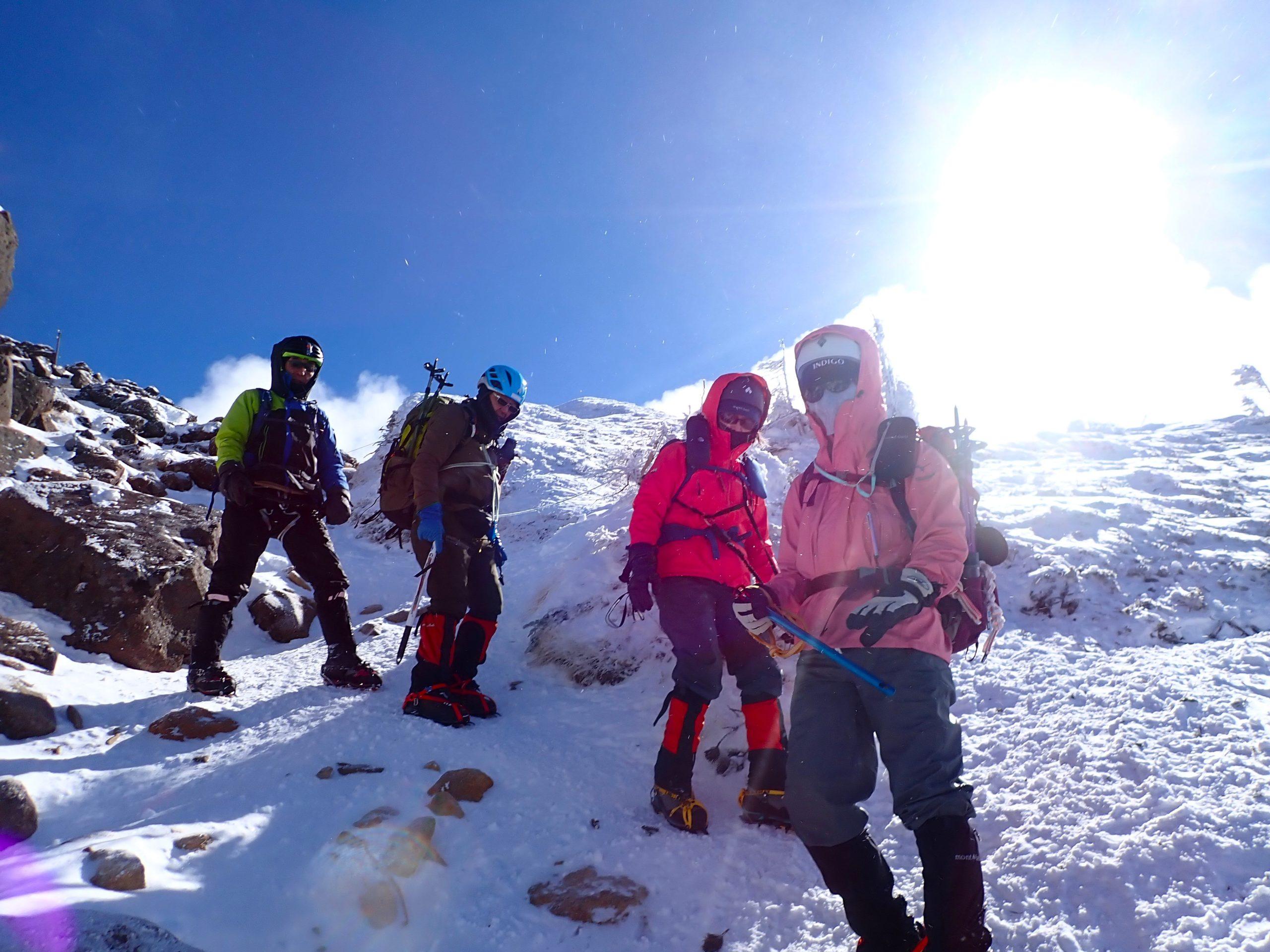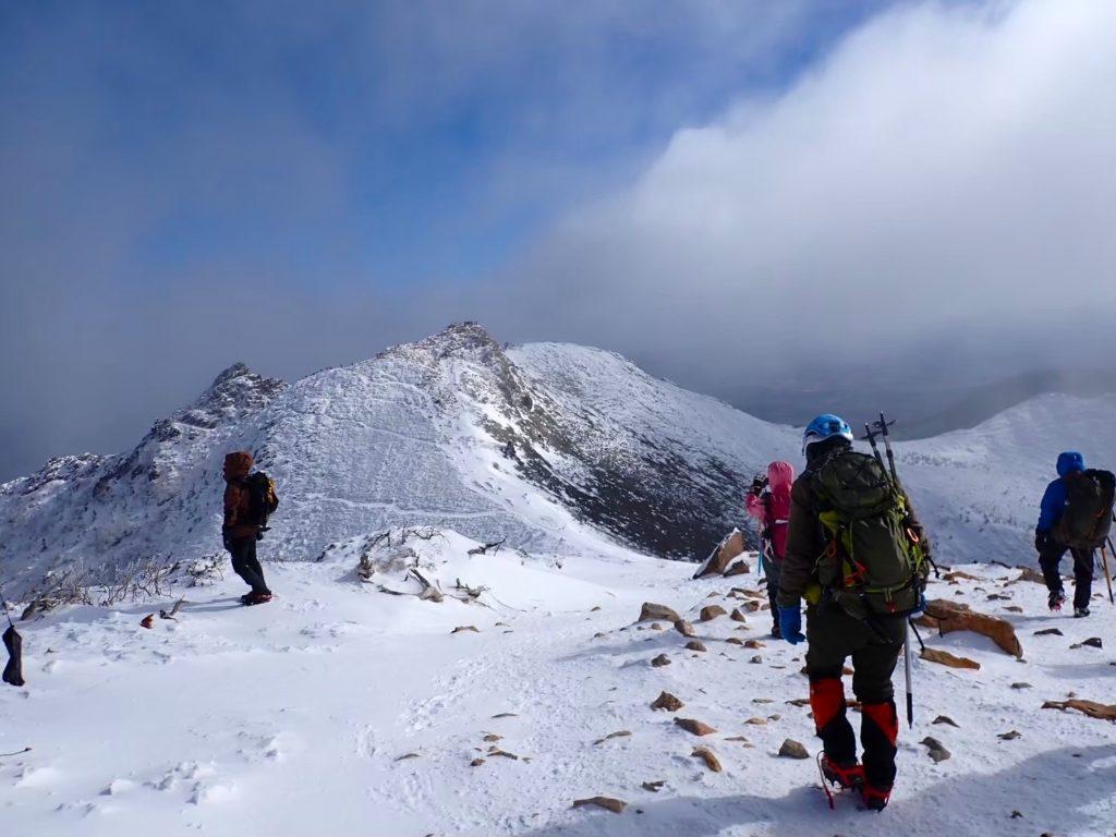 ピッケルを使って、西天狗岳を登る! 風は思ったより強くなかった。